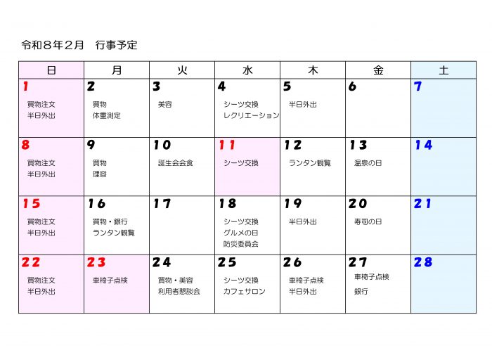 令和8年2月 行事予定